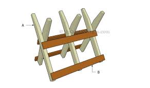 If you have a large amount of relatively large logs, a simple wooden X-type sawbuck, shown to the left, may be your best bet. They can hold more than one log, and keep the log off the ground and relatively secure as you cut. Because of their relatively short length, you may need to buck your log into smaller pieces before you load it into the sawbuck, to prevent it from tipping over. Depending on how you construct it, an X-Type sawbuck may take up a lot of extra room to store, and may be heavy and unweildy to haul to your firewood source.